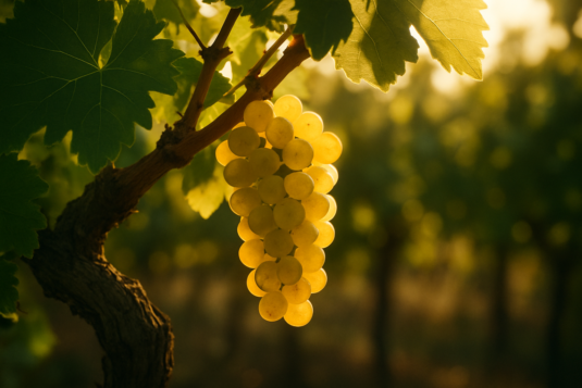 Die Reben glänzen, als hätte die Nacht ihnen heimlich Geschichten eingeflüstert —
